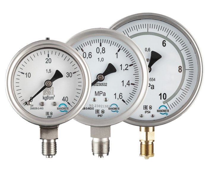 Манометр – прибор для измерения давления в замкнутом пространстве. Действие манометра основано на уравновешивании измеряемого давления силой упругой деформации трубчатой пружины или более чувствительной мембраны, один конец которой запаян в держатель, а другой через тягу связан с трибко-секторным механизмом, преобразующим перемещение упругого чувствительного элемента в круговое движение показывающей стрелки.